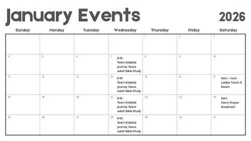 Sunday's - At 9:00am we offer a Sunday School hour for adults as well as a Sunday School for our teens.
