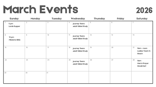 Sunday's - At 9:00am we offer a Sunday School hour for adults as well as a Sunday School for our teens.