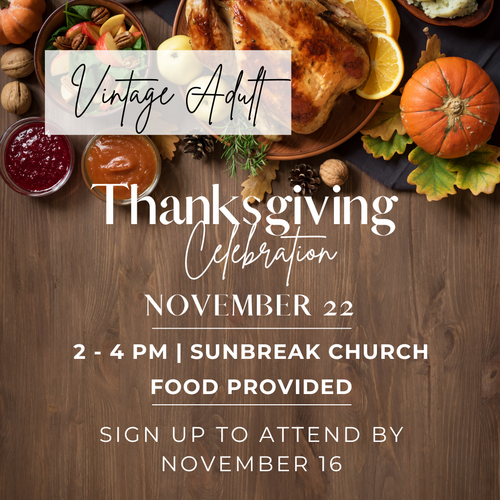 Join us in November for our Thanksgiving celebration. Sign up required.